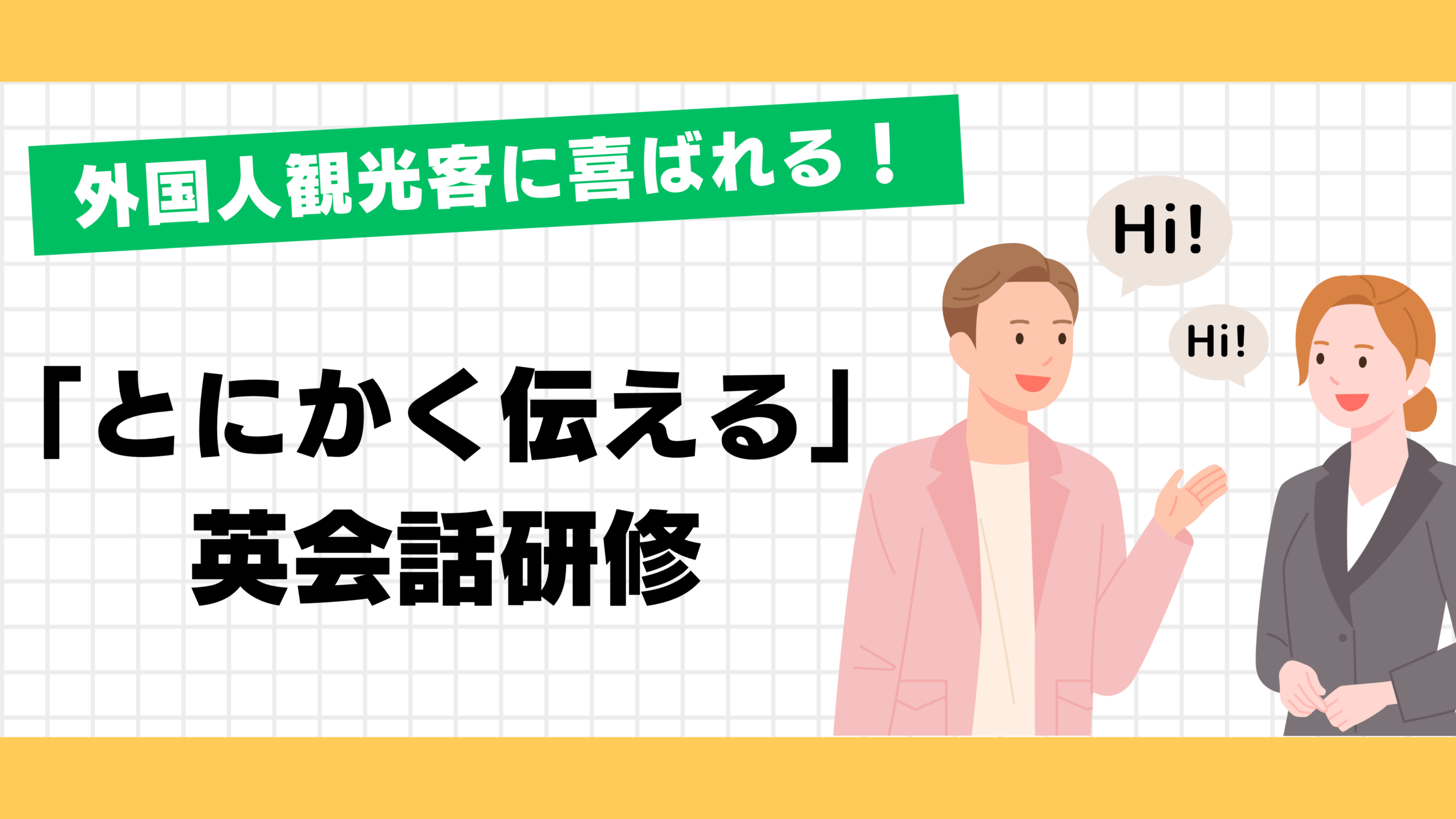 本研修では、英語が話せなくても対応できる「接客英会話」と「伝える工夫」を実践的に習得します。