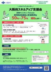 【求職者・在職者向け】大阪府スキルアップ支援金